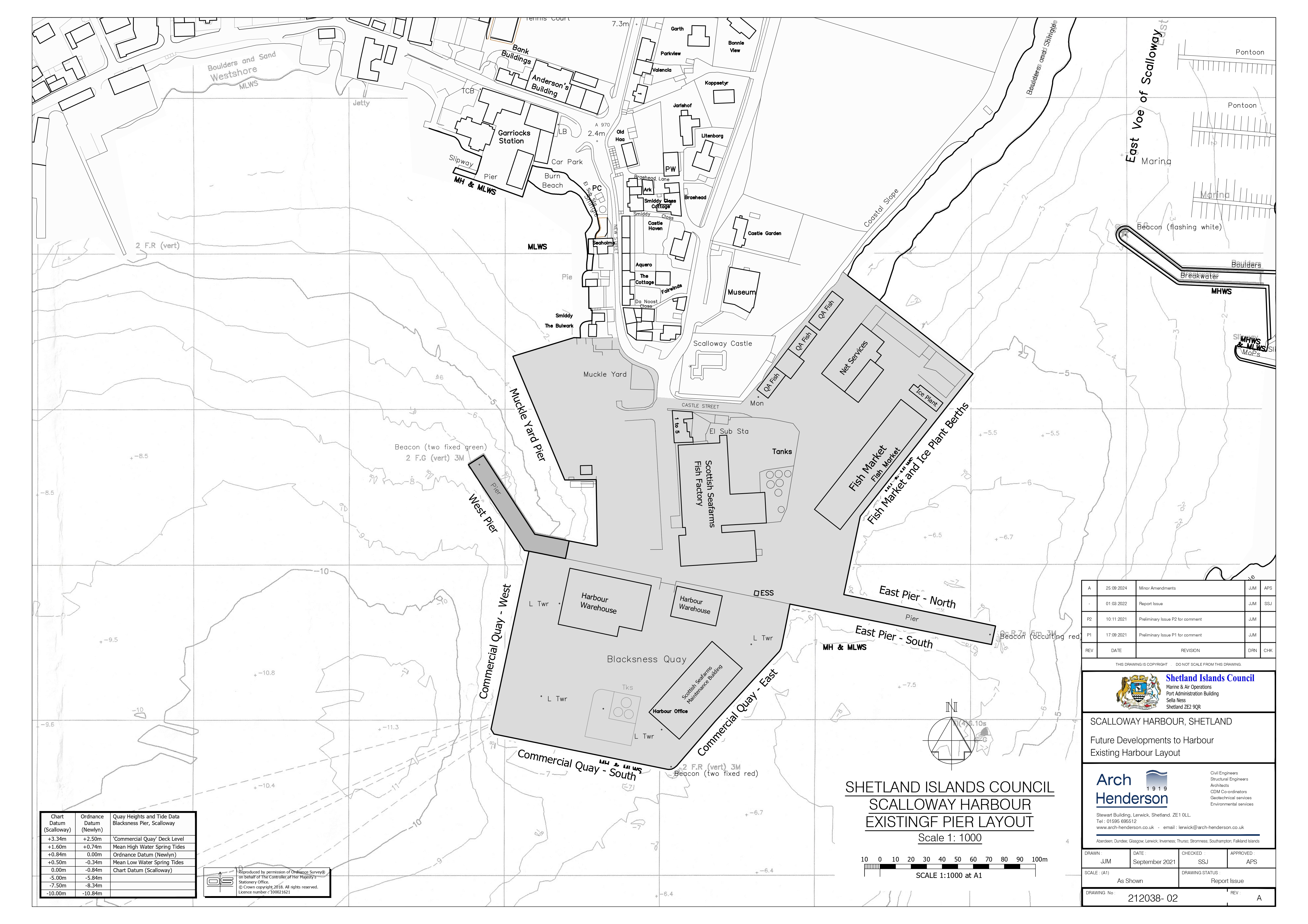 Shetland Islands Council have appointed engineering consultants Arch Henderson to lead on the development of possible layouts and options for the harbour. Consultation meetings will take place with harbour users, and stakeholders including representatives of the fishing, aquaculture, renewables, engineering and freight industries. A public drop-in session will also be held on Wednesday 30th October in Scalloway, offering the public a chance to view and comment on possible options.